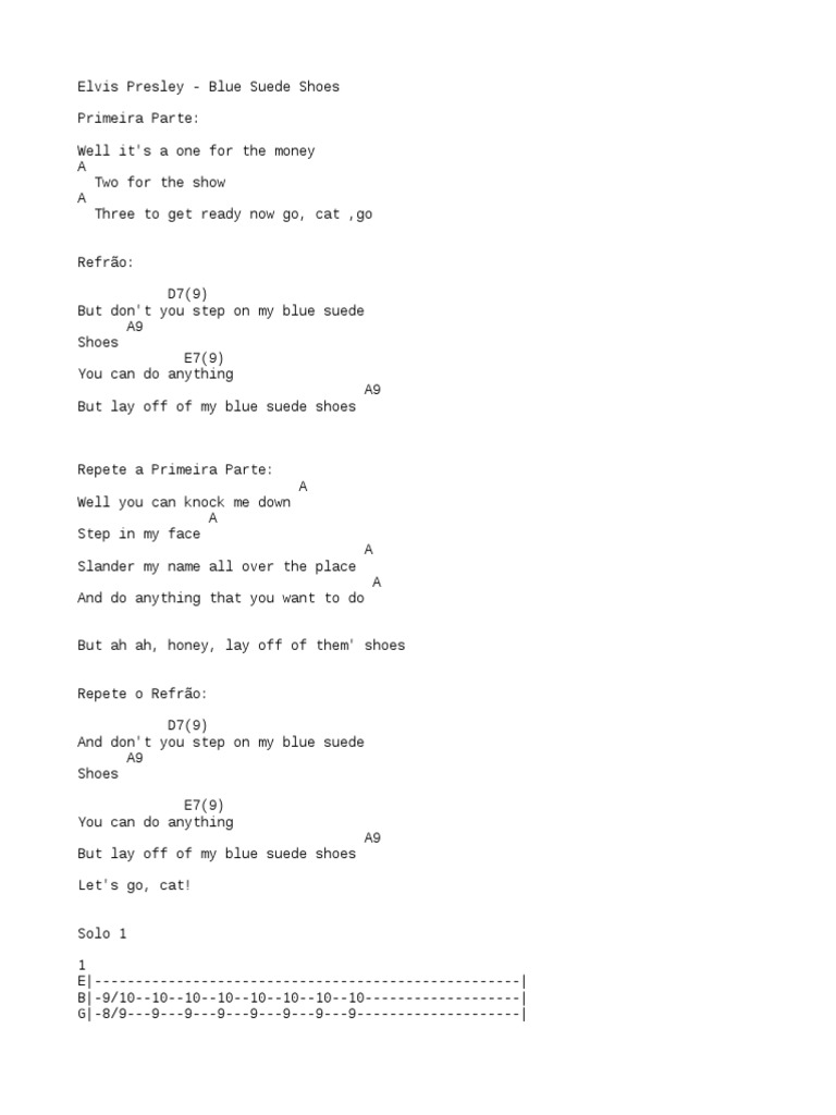 Blue Suede Shoes 2 By Elvis Presley Lyrics And Chords